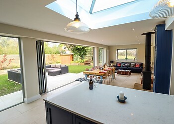 - Open plan living with wood burner